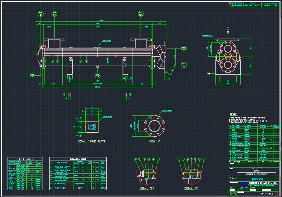 SPECIAL DRAWING 고온·고압, 부식 환경, 제한된 설치 공간 등 복잡한 산업 조건에 최적화된 설계로 맞춤 제작하며, TEMA, ASME 등 국제 기준을 준수한 정밀 설계 및 제작으로 품질과 안전을 보장합니다. 설계 검토부터 성능 해석, 제작 후 검사까지 원스톱 엔지니어링 서비스를 제공하며, 다양한 산업 현장(화학, 조선, 발전 등)에서 검증된 신뢰성을 바탕으로 최고의 솔루션을 약속드립니다. 제품명을 클릭하시면 도면에 표시된 사항을 상세하게 확인하실 수 있습니다. INTER COOLER TUBEDHA-1004407 AFTER COOLERDHA-1004408 AFTER COOLERDHA-1004356 AFTER COOLERDHA-1004476 OIL COOLERDH0-154315 Preparing 제품 문의 및 구매에 대한 도움이 필요하십니까? 편하실 때 연락 주시면 성심껏 답변 드리겠습니다. Learn More